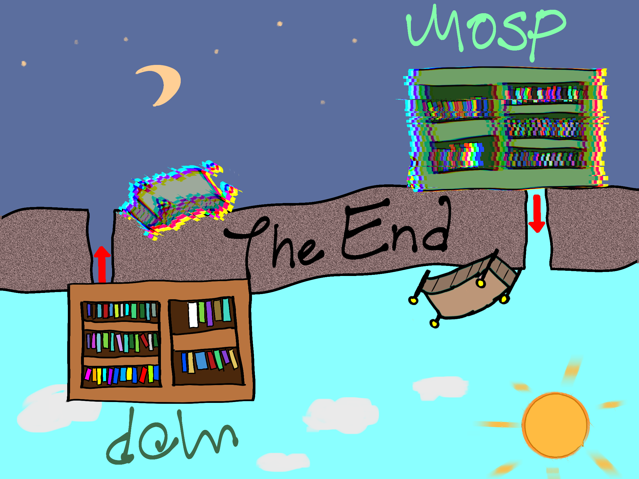 This was the actual link-map we used for the virtual MOP's in 2020 and 2021. When MOP was being held virtually, there were so many different platforms we were using in different ways that I drew a little cartoon map in 2020 and put it in a Google Draw so it would be easier for people to find things. Later on that map ended up becoming the basis of the MOSP Hunt.